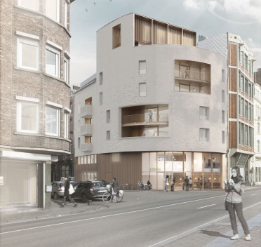 Le bâtiment existant, construit dans un style néo-classique au 19è siècle, a été malmené par une transformation brutale des rez et 1er étage datant des années ‘40. Il est choisi par la Ville pour sa position stratégique dans le centre, ainsi que pour sa capacité potentielle à servir de moteur à la rénovation de la rue, constituée d’un ensemble d’immeubles homogènes vétustes.